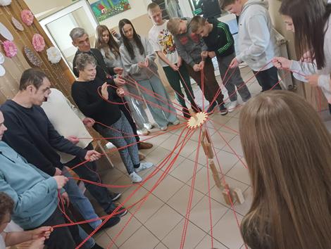 Jednym z wydarzeń były warsztaty sportowo-plastyczne, w których uczestniczyli uczniowie klas IIc, IIIb oraz VIa wraz z podopiecznymi Środowiskowego Domu Samopomocy. Był to czas pełen serdecznych rozmów, uśmiechu oraz wspólnego odkrywania siebie nawzajem. Dzięki różnorodnym aktywnościom – zarówno ruchowym, jak i twórczym – uczestnicy mogli lepiej zrozumieć potrzeby i perspektywę drugiego człowieka. Spotkanie pokazało, jak ogromne znaczenie w codziennym życiu mają akceptacja, empatia i otwartość. Wspólna praca, zabawa i wzajemna pomoc sprawiły, że wszyscy poczuli się częścią jednej, zintegrowanej społeczności.