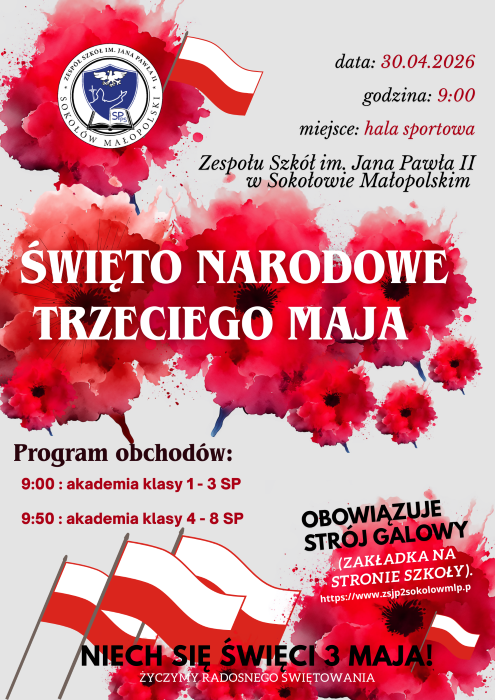 Ogromne podziękowania składamy za pomoc w organizacji oraz wsparcie finansowe dla Urzędu Gminy i Miasta w Sokołowie Małopolskim, Pani Aliny Marszałek, a także Rady Rodziców Zespołu Szkół w Sokołowie Małopolskim oraz Rady Rodziców Przedszkola Samorządowego w Sokołowie Małopolskim. Państwa pomoc, otwartość i gotowość do działania miały ogromny wpływ na powodzenie całego przedsięwzięcia.