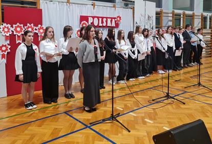 Nasza szkoła celebrowała Narodowe Święto Niepodległości także poprzez udział w wyjątkowym wydarzeniu, jakim jest wspólne odśpiewanie „Mazurka Dąbrowskiego” w ramach akcji Szkoła do hymnu przez całą społeczność szkolną oraz strój galowy uczniów.