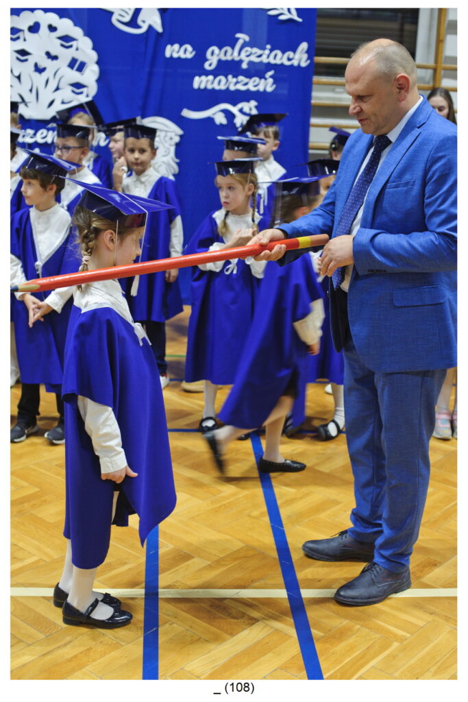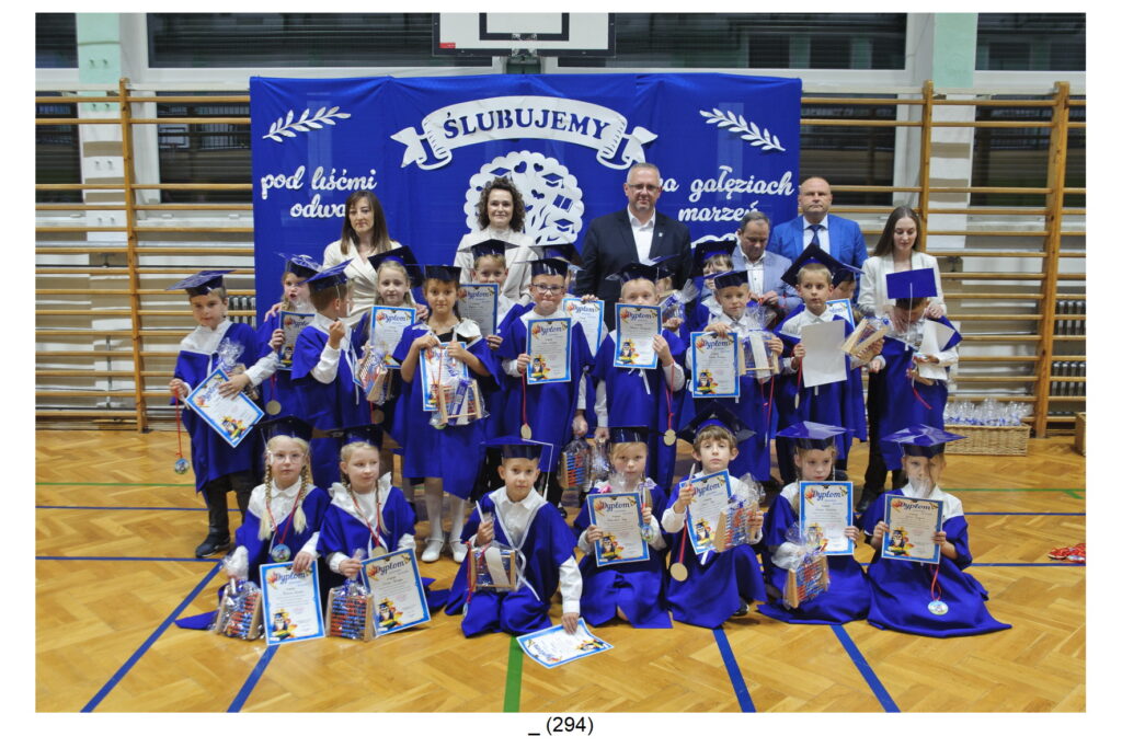 i wzruszających uroczystości w roku szkolnym – Pasowanie na Ucznia. To ważne wydarzenie na stałe wpisało się w kalendarz szkolnych tradycji i stanowi symboliczne przyjęcie pierwszoklasistów do grona społeczności szkolnej. Na hali sportowej naszej szkoły zebrali się rodzice pierwszaków, a także zaproszeni goście – Dyrekcja Zespołu Szkół im. Jana Pawła II, Burmistrz GiM Sokołów Młp. Andrzej Kraska, Przewodniczący Rady Miejskiej Paweł Rusin, Przewodniczący Rady Rodziców Krzysztof Różański oraz inni członkowie RR.