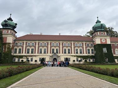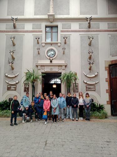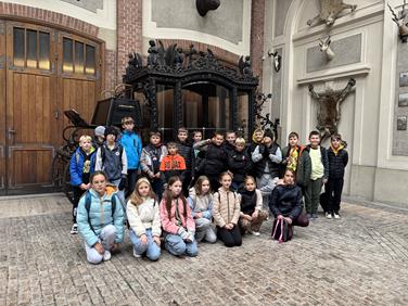 Dnia 3 października 2025r. uczniowie klas 5a i 5d udali się na wycieczkę do zamku w Łańcucie. Podczas zwiedzania dzieci miały okazję podziwiać bogato zdobione wnętrza parteru oraz pierwszego piętra zamku. Przewodnicy opowiadali ciekawe historie związane z rodem Lubomirskich i Potockich, co pozwoliło uczniom lepiej poznać dzieje tego wyjątkowego miejsca.