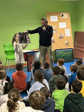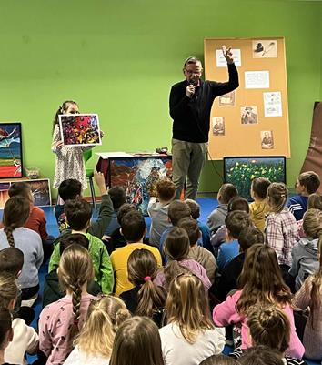 Atmosfera była niezwykle sympatyczna. Pan Wojciech opowiadał o tym, skąd czerpie inspiracje do swoich bajek, jak powstają jego wiersze oraz dlaczego fotografia jest dla niego tak ważna. Uczniowie poznali kulisy pracy twórczej, dowiedzieli się, że pomysły mogą rodzić się wszędzie – podczas spaceru, rozmowy czy obserwacji świata.