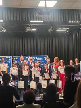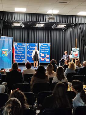 Naszą szkołę reprezentowało w tym konkursie dwoje uczniów: Amelia Jabłońska z klasy 8c i Aleksander Drozd z klasy 5c. Amelia wybrała wiersz Wacława Kwiecińskiego “Białe szkielety” i zachwyciła jury, zdobywając 1 miejsce w swojej kategorii i wygrywając rywalizację z 16 innymi osobami. Wszyscy uczestnicy zostali nagrodzeni upominkami.