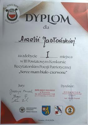 Sukcesy naszych uczniów w Powiatowym Konkursie Recytatorskim “Serce mam biało-czerwone”.