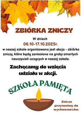 W naszej szkole została przeprowadzona zbiórka zniczy, mająca na celu uczczenie pamięci zmarłych nauczycieli oraz pracowników szkoły. Dzięki zaangażowaniu uczniów, rodziców i nauczycieli udało się zebrać dużą liczbę zniczy, które w najbliższych dniach zostaną zapalone na grobach tych, którzy przez lata tworzyli historię naszej placówki.